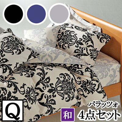 ギフト対応 LANCETTI【パラッツォ】カバー4点セット【敷き布団タイプ】 【ブラック×グレー】セット内容 ・掛けカバー(ブラック/グレーのリバーシブル) ・敷きカバー(グレー(お写真と同じ) ・ピロケース(ブラック)2枚 【ブルー×グレー】セット内容 ・掛けカバー(ブルー/グレーのリバーシブル) ・敷きカバー(グレー(お写真と同じ) ・ピロケース(ブルー)2枚 サイズ ・掛けカバー:220×210cm(クイーンサイズ) ・敷きカバー:165×215cm(クイーンサイズ) ・ピロケース:43×63cm 生地 綿100% ※ はぎ(継ぎ目)について ※ 原反(元になる大きな布)の生地幅の関係上、 生地を継ぎ足して加工しなければならないため、縦に「はぎ(継ぎ目)」が入ります。